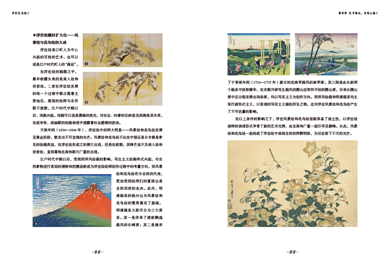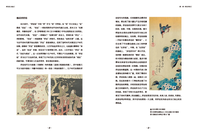 名家名作全收錄,經典畫作一套全收:書中收錄了幾十位畫師的幾百幅畫作,既有鈴木春信、喜多川歌麿、葛飾北齋、歌川廣重、歌川國芳等浮世繪大家,又匯聚了《夜之梅》《雪中烏鷺圖》《遠東山雀與知更鳥》《菊與雀》等浮世繪名作,讓您不必東奔西跑地看展,在家就可以欣賞到大師作品。