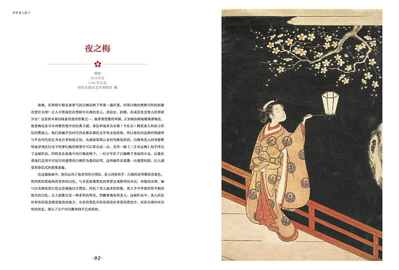 《浮世美人繪》:美人是浮世繪的重要題材,本書收錄二百七十餘幅圖片,順序梳理了三百年浮世繪中美人形象的審美演變。全書甄選了二十四位畫師的一百一十幅精美大圖,從懷月堂派美人的豐腴華麗、鈴木春信美人的纖細風情、喜多川歌麿美人的自然浪漫,再到溪齋英泉美人的妖冶不屈、鏑木清方美人的散漫耽美……回顧和展示了不同時期畫師的作品特色。