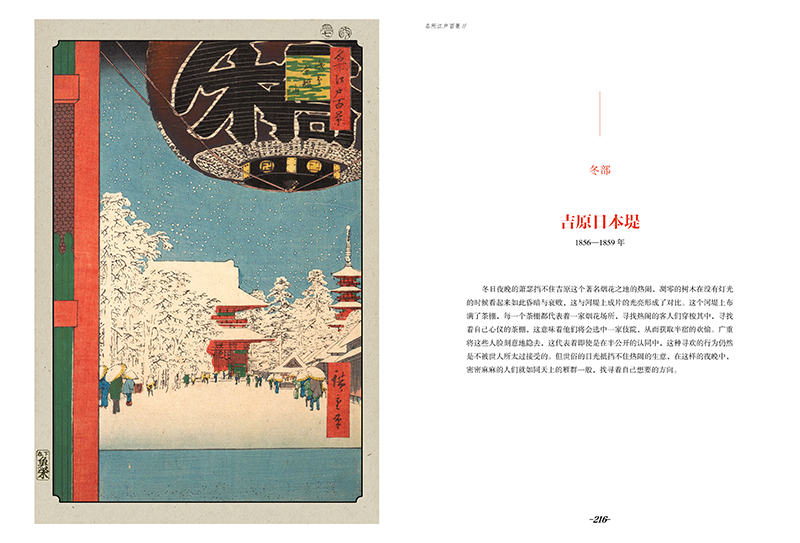 《歌川廣重:名所江戶百景》:歌川廣重被譽為日本“浮世繪三傑”之一,擅長運用秀麗的筆墨、和諧的色彩表達出富於詩意的大自然景緻。 《名所江戶百景》是歌川廣重的代表作,這本圖集淋漓盡致地展現了日本江戶時期的民間百態。浪漫的櫻花、婀娜的歌舞伎、人頭攢動的街頭,栩栩如生,躍然紙上。歌川廣重的畫作開啟了風景繪的新局面,甚至影響了印象派、後印象派與新藝術運動的藝術家。