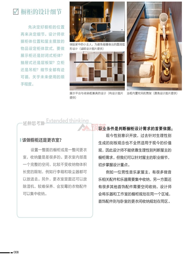 書中除了居家與商空櫥櫃設計的風格演繹,另外收錄個案示範的櫥櫃立面圖與空間平面圖,圖解設計的細節說明,空間動線和櫥櫃設計之間的平衡關係,幫助業主實現系統收納與舒適的居住體驗