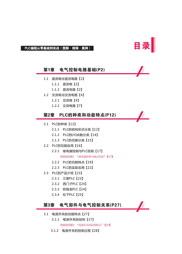 書中配有二維碼,掃描就可以看視頻講解,內容涵蓋電力設計與模擬軟件、西門子S7-200 SMART PLC和三菱FX3U PLC程式設計軟件與模擬舉例等,使讀者無需PLC硬體,僅借助於電腦就可以實現PLC程式設計模擬和動畫演示等功能。