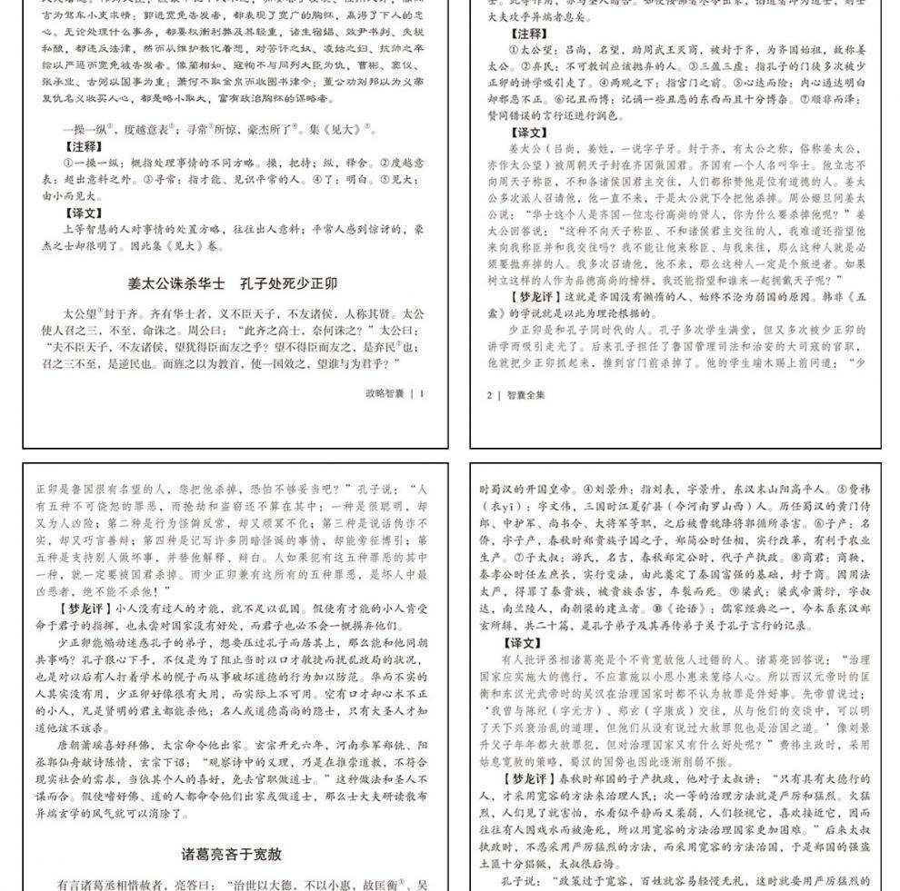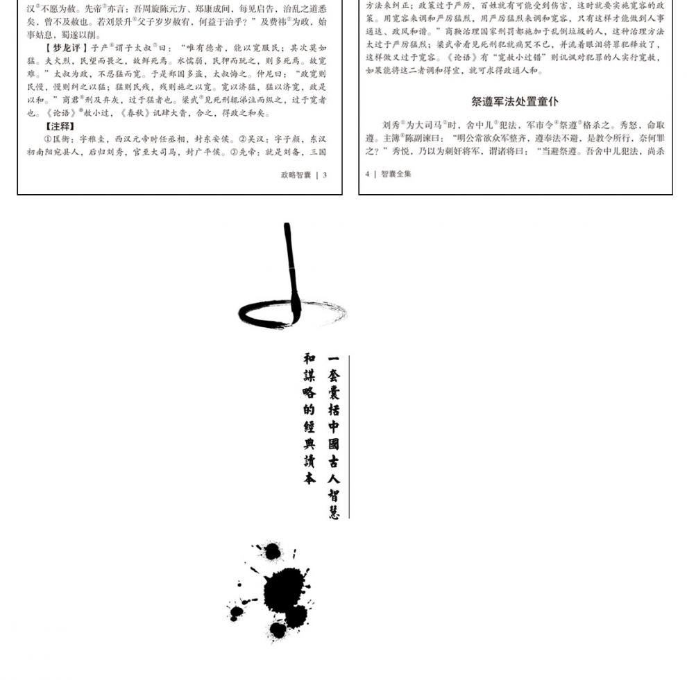 《智囊全集》是一部中國人民智慧的創造史和實踐史。 書中所變現的人物,無論是叱詫風雲的帝王將相,還是普通的平民百姓,都在運用智慧和謀略創造歷史。 它既是一部反映古人巧妙運用聰明才智來排憂解難、克敵制勝的處世奇書,也是中國文化史上一部篇幅龐大的智謀錦囊。