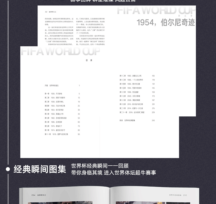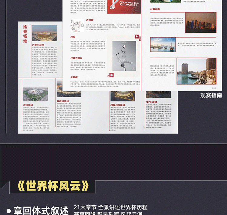 文字細緻平實、有感染力,兼顧細節描繪與宏觀敘事,對球星和賽事進行深入淺出的介紹和分析,展示賽場內外的風雲際會,致力於使讀者對世界盃足球賽有更加全方位、立體化的認識和了解。