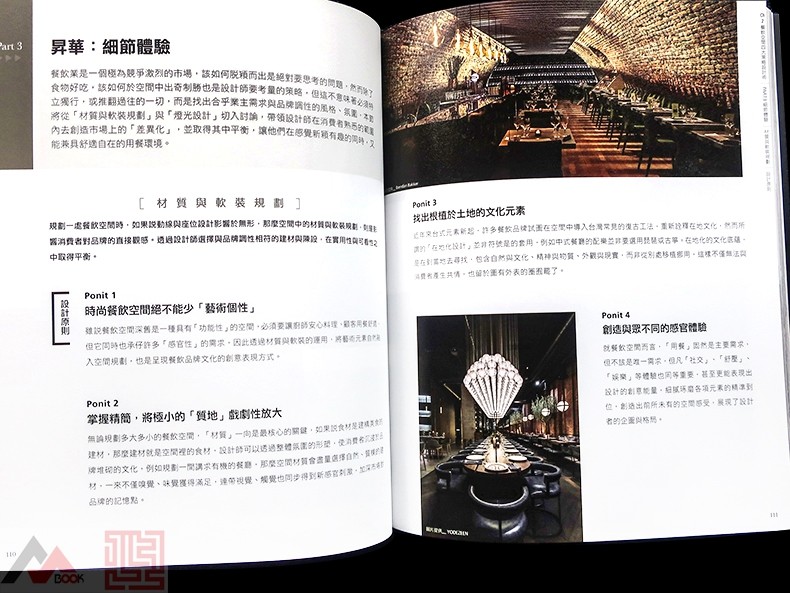 今年重磅改版的《餐飲空間設計聖經2.0》,旨於分享給餐飲創業者對於新時代飲食空間的品牌價值,從吸引消費者主動上門,再到提高人潮回流消費意願,透過書中編輯部統整的四大設計策略:「搶鏡亮點」、「空間規劃」、「細節體驗」、「再訪消費」,帶領讀者由外至內精準布局餐飲空間、升級品牌美學價值,打造令顧客驚艷的超人氣餐飲空間優勢!