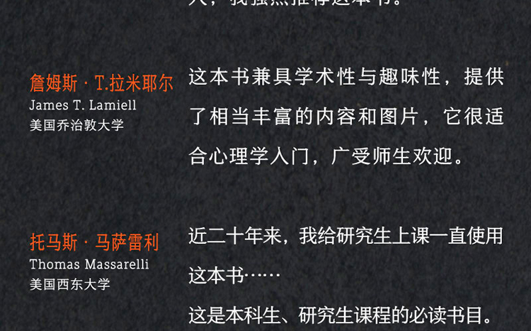 《劍橋心理學史(第7版)》涵蓋了心理學從古至今的發展歷程,既梳理了心理學的西方基礎又呈現了心理學的東方貢獻,同時介紹了心理學在當代的應用和發展方向,為廣大心理學的教師和學生提供了內容合理、結構良好的教學材料。