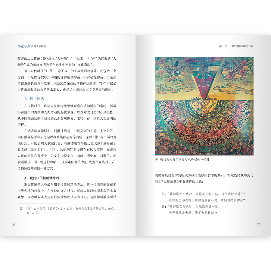 藏族文學史上下幾千年,內容涵蓋非常廣泛。 本書創新編排思路,從歷時和共時兩個方面,以口傳文學類型、書面文學類型的劃分管道,對西藏文學進行了全面梳理,展示了頗具雪域高原民族特點的瑰麗文學“松石寶串”,以西藏文學發展脈絡和各類代表性作品,引導讀者穿越西藏歷史的塵埃,認識真實西藏。