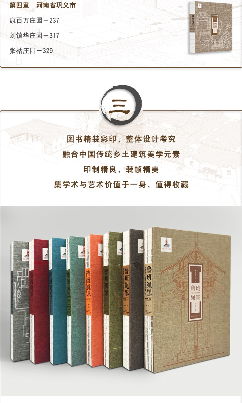 《魯班繩墨:中國鄉土建築測繪圖集(1-8卷)》彙集了清華大學建築學院李秋香老師和她所在“鄉土建築研究組”二十餘年帶領學生走鄉入村實地測繪的成果,該課題組傳承清華建築大師梁思成、林徽因繼承、搶救中國民族建築的傳統, 以科學嚴謹的工匠精神為我國的建築文化留下了不可替代的珍貴史料。 本書獲得兩院院士、中國建築學家吳良鏞先生的高度評價和大力推薦。