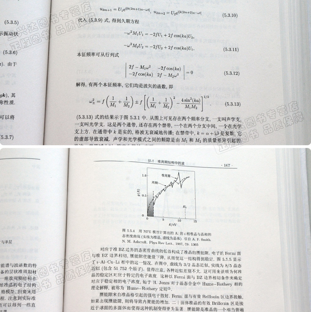 上卷以綜覽開頭,接下來是前四編。 第一編凝聚物質的結構,論述晶態物質的結構對稱性和構築原理,並延伸至晶體之外,涉及到合金、玻璃、液晶和聚合物等,以及非均質物質; 第二編各種物質結構中波的行為,從論述週期結構中波的傳播出發,分別加上准週期性、表面和雜質,以及無序帶來的影響,特別強調了不同結構和條件下電子的動力學和輸運性質; 第三編鍵、能帶及其它,圍繞電子結構這一重要主題,分別論述了在不同場合下鍵和能帶途徑的有效性,以及在處理强關聯電子系統時的局限性,也指出了可能的改進方案,進而對納米結構的電子性質進行了論述; 第四編相變和有序相,首先利用唯象的Landau理論,突出對稱性破缺這一覈心概念,為各種不同的相變類型建立了統一的理論框架,進而分別論述了結構相變、磁有序相變和超導超流相變,兼顧到宏觀和微觀的描述,最後考察了與更廣義的遍歷性破缺有關的相