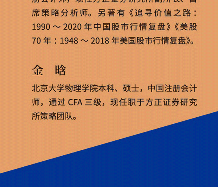燕翔,北京大學光華管理學院經濟學博士,中國註冊會計師,現任方正證券研究所副所長、首席策略分析師。另著有《追尋價值之路:1990~2020年中國股市行情復盤》《美股70年:1948~2018年美國股市行情復盤》。
