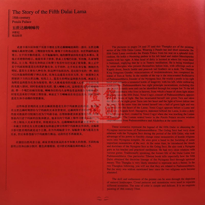 《看不見的唐卡》一書對多幅西藏唐卡藝術作品進行了詳細的分析,對西藏唐卡藝術的畫派、唐卡中出現的尊神以及他們所代表的宗教涵義闡釋的淋漓盡致,對每一幅唐卡作品作了細緻的解釋和分析,對讀者瞭解唐卡、瞭解唐卡藝術有巨大的幫助。 同時,該書為中英文對照版本,方便外國讀者瞭解西藏的唐卡藝術,從而加深外國友人對中國西藏的瞭解、對西藏唐卡藝術的理解。