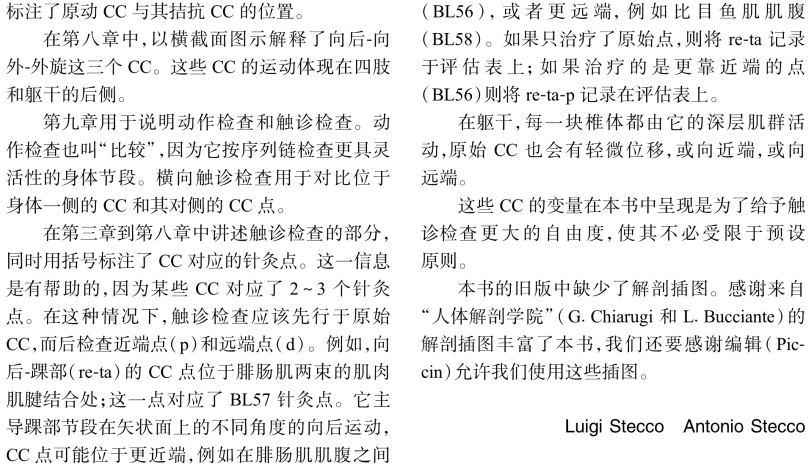 本書以科學的研究證據為基礎,全面介紹如何應用Luigi Stecco創建的筋膜手法。本書向手法治療師、醫師、患者、運動訓練教練及想要了解和學習筋膜手法的人介紹了關於筋膜的充足的知識。這本書內容排版很有邏輯性,前3章介紹了筋膜手法的發展歷史、筋膜解剖學( 第2 章) 和生理學( 第3 章),其他章節則主要圍繞筋膜手法技術展開,如第4 章重點介紹了筋膜手法的關鍵概念;第5 章結合了一些病例;第6 章主要提到內部功能障礙;第7 章講述獸醫應用筋膜手法。