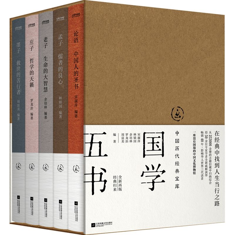 ·《中國曆代經典寶庫·國學五書》內含5冊:《論語:中國人的聖書》《孟子:儒者的良心》《老子:生命的大智慧》《莊子:哲學的天籟》《墨子:救世的苦行者》